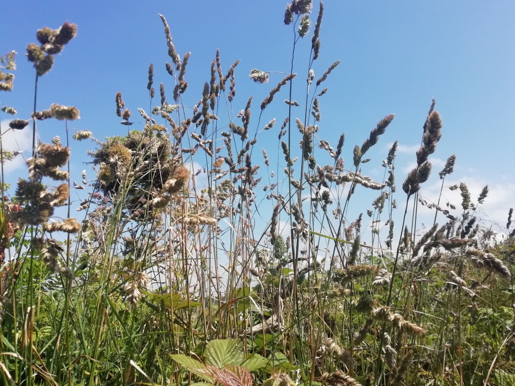 Chasing gatekeeper butterflies through long grasses where the ground steams with the midday heat. The light is white. The colours have not yet been bleached by the long summer days but they slide away beneath the dazzle of the sunshine. I sit on warm earth and feel daisies and pimpernel knotted beneath my palms. A little body leaps and rolls in the swaying ocean of grass. Time lifts and dissipates in the breeze. Today is all there is, weighed down by the heat.